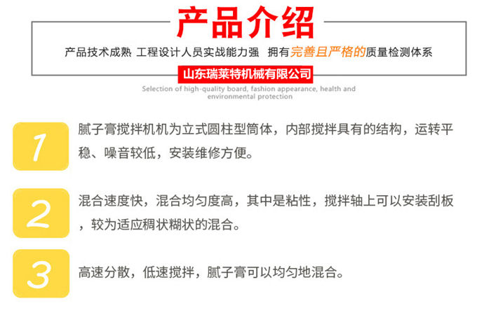 立式膩?zhàn)痈鄶嚢铏C(jī)內(nèi)有高速分散盤,采用高速分散低速攪拌的原理,使物料攪拌較快較均勻,電動(dòng)出料,輕輕一踩腳踏開(kāi)關(guān)即可放出攪拌好的物料,內(nèi)加刮板,攪拌葉片與桶壁間隙小,殘留較少,出料較干凈。干粉原材料由螺旋上料機(jī)上料,液體可以由水泵上料,使用方便,大大降低了勞動(dòng)強(qiáng)度,提升了生產(chǎn)效率。可根據(jù)不同物料的實(shí)際需求定制碳鋼及不銹鋼材料。